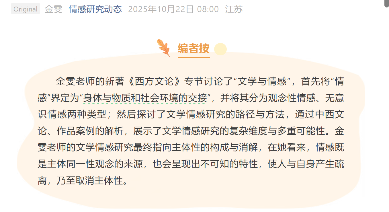 摘自金雯《西方文论》第三章第一节“文学与情感”: